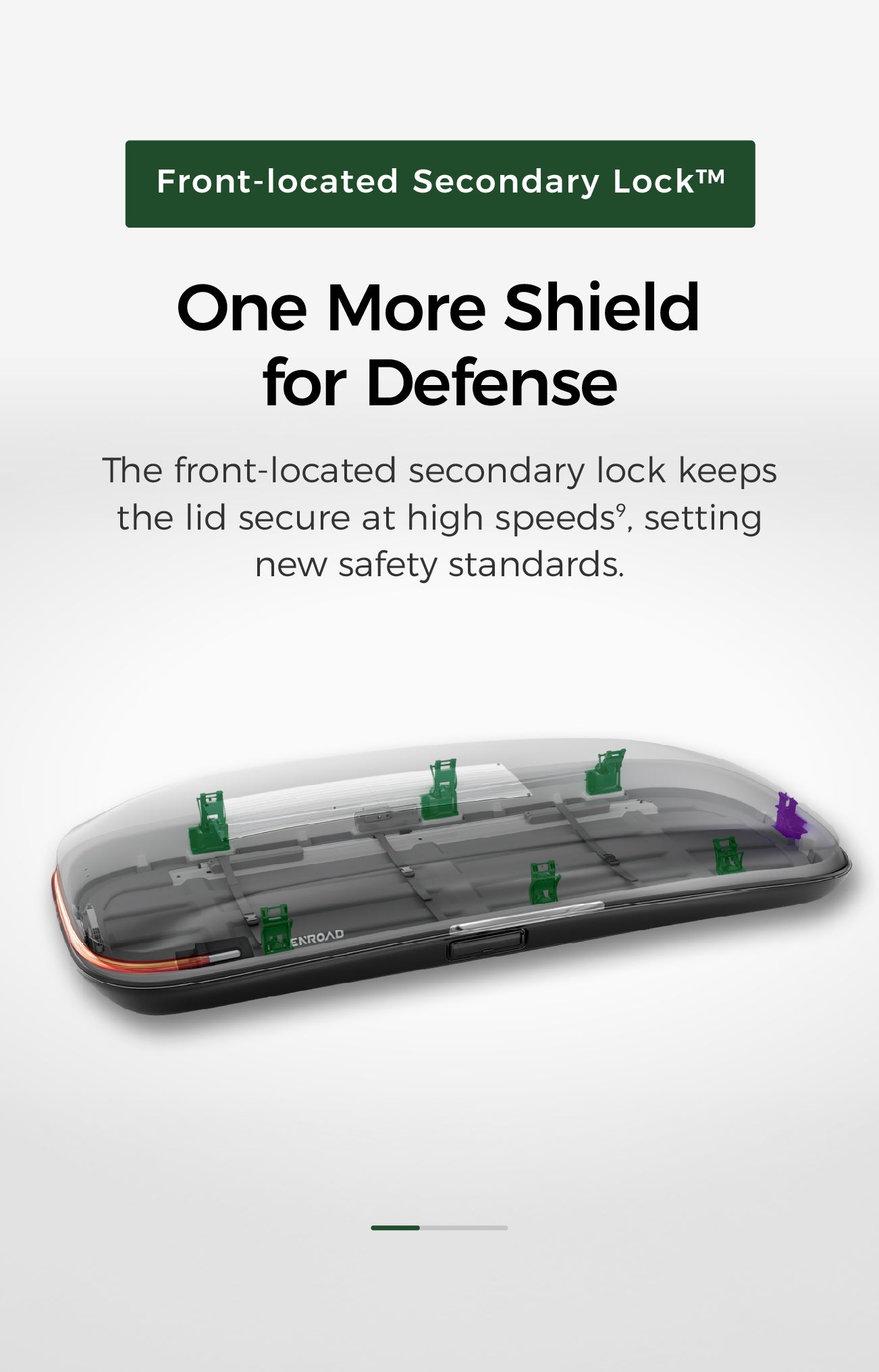 The front-located secondary lock keeps the lid secure at high speeds⁹,